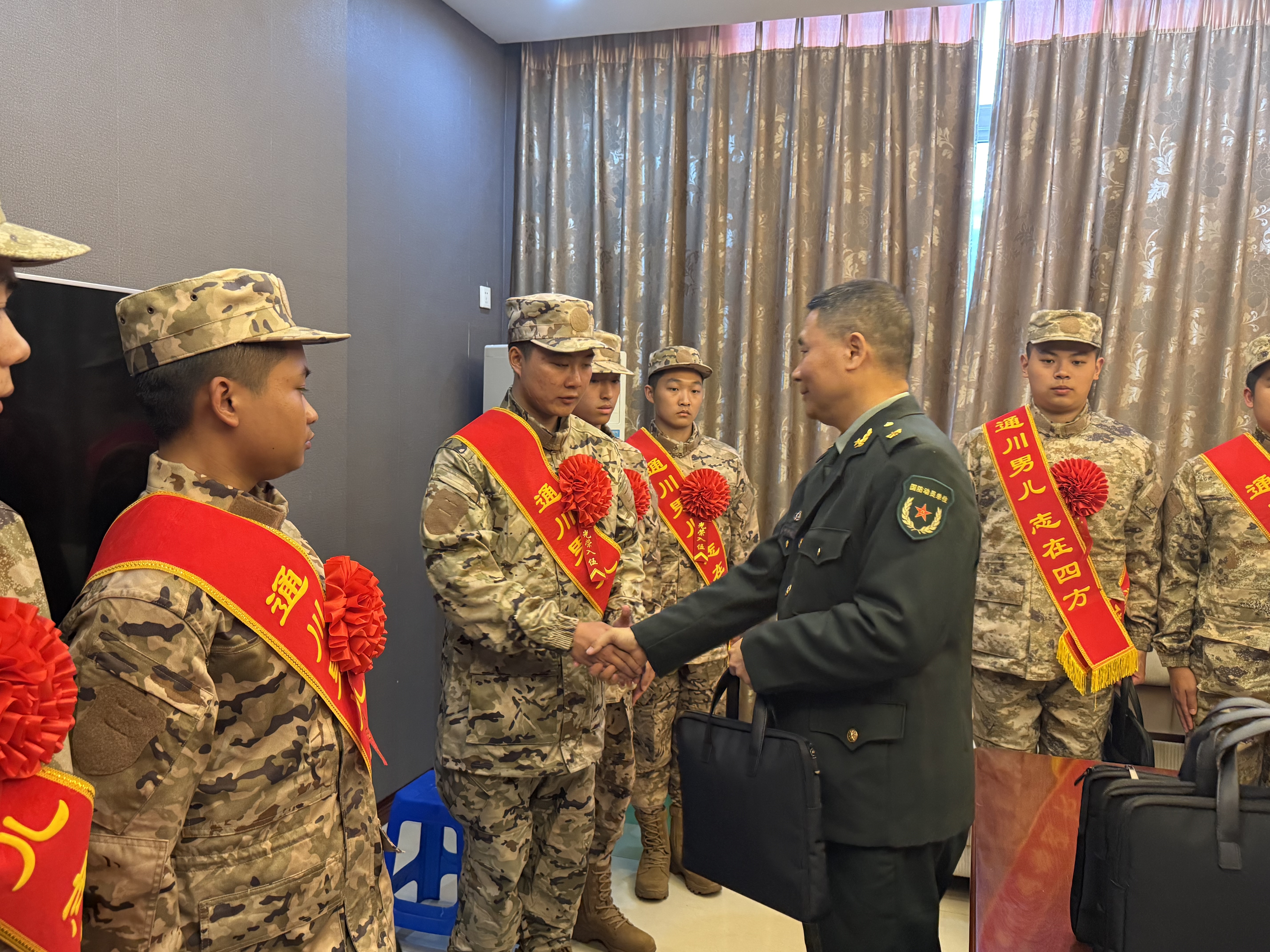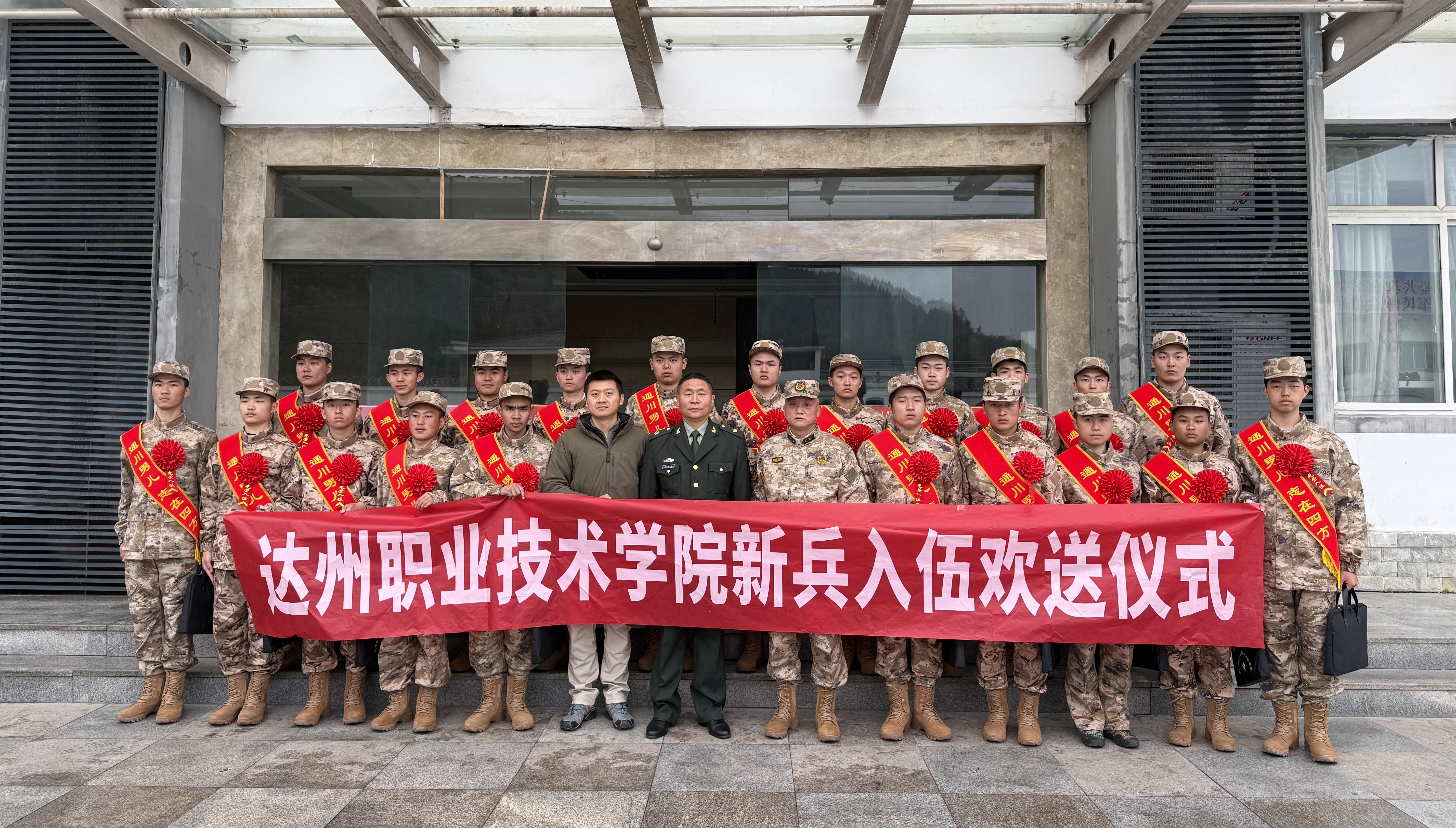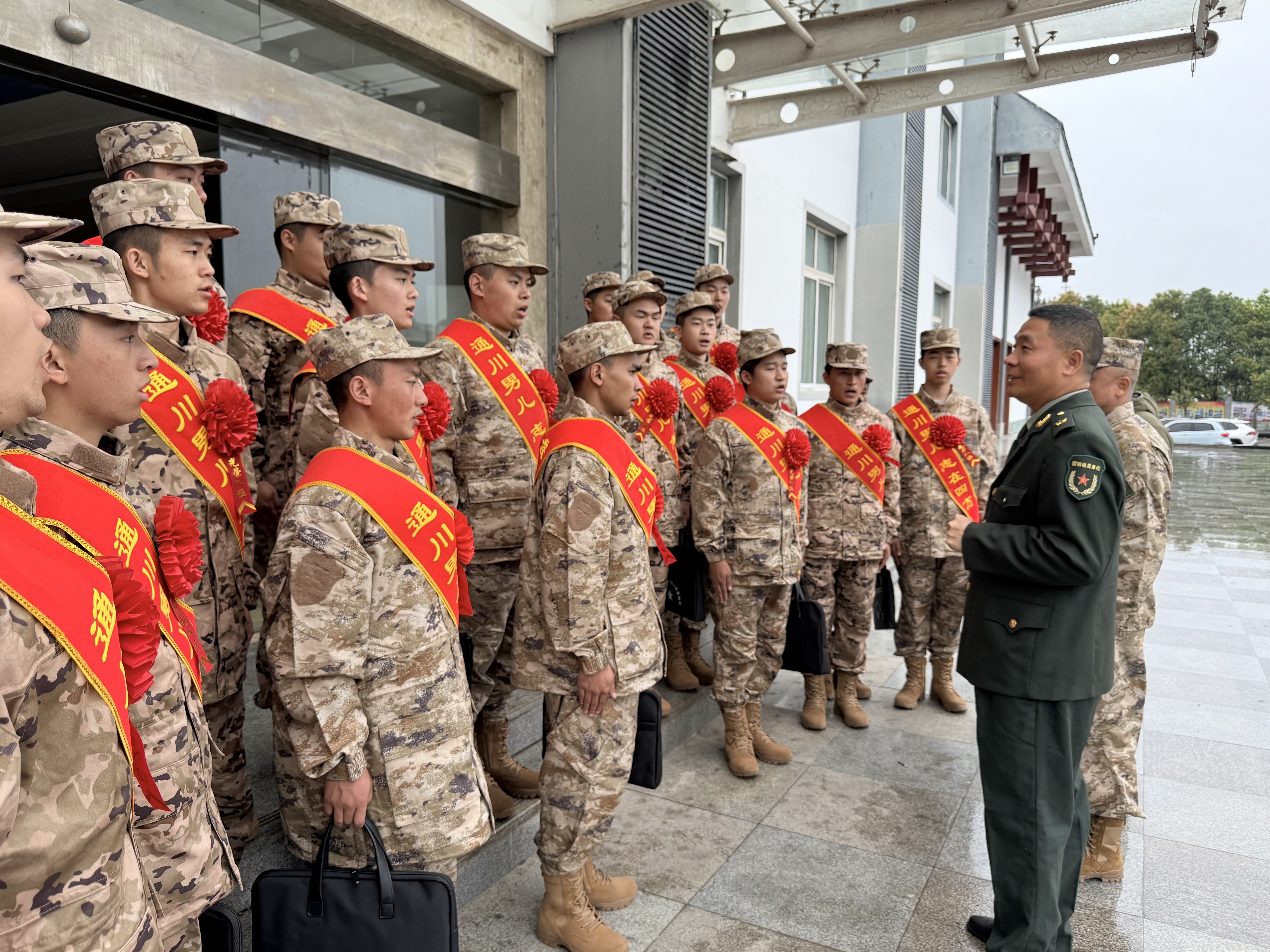 欢送现场,身披“通川男儿 志在四方”绶带、胸戴大红花的新兵们精神抖擞、列队整齐,展现出新时代青年投身国防事业的昂扬风貌。
